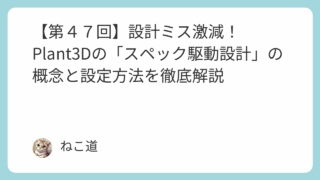 Plant3D 【第45回】【初級者必見】Plant3Dを最速で使いこなすための初期設定と基本操作ロードマップ プラント配管設計に革命をもたらすAutoCAD Plant3D。しかし、いざ導入すると「どこから手をつければいいのか分からない」と戸惑う方も多いと思います。2D-CADとは設計の思考プロセスが根本的に違うため、最初に正しいロードマップを把握... 2025.10.01 Plant3D