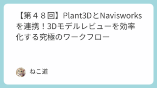 Plant3D 【第48回】Plant3DとNavisworksを連携!3Dモデルレビューを効率化する究極のワークフロー 設計レビューの現場は、まだ紙図面と赤ペン、そして山のような打ち合わせ資料で溢れていませんか?特にプラント設計では、配管の取り合いや機器のアクセス性など、2D図面では判断が難しく、レビューに時間がかかりがちです。この課題を解決し、レビュープロ... 2025.10.06 Plant3D