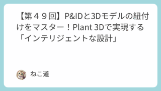 Plant3D 【第49回】P&IDと3Dモデルの紐付けをマスター!Plant 3Dで実現する「インテリジェントな設計」 プラント設計において、P&ID(配管計装図)は設計の思想であり、3Dモデルは設計の具現化です。しかし、この二つが独立して作成・管理されていると、設計変更の際に図面間の不整合が発生し、それが致命的な手戻りやミスの原因となります。AutoCAD... 2025.10.07 Plant3D