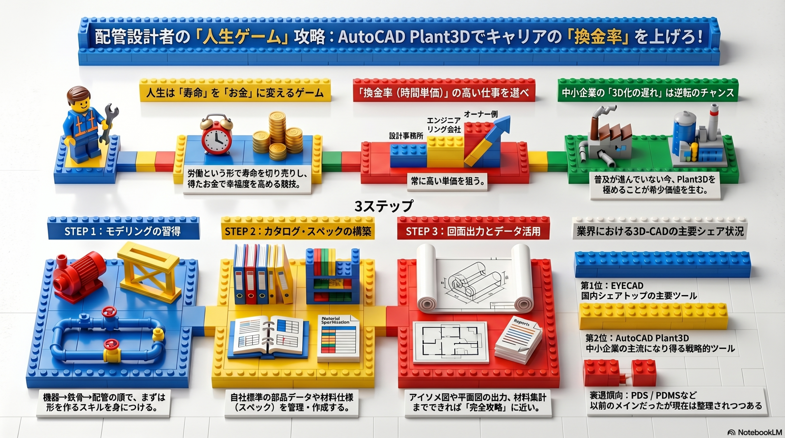今からの最強戦略は、「配管設計のスキル」と「3D-CADのスキル」を並行して高めていくことです。