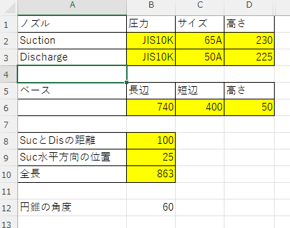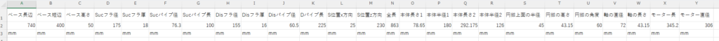 先ほどと同じエクセルデータの別シートにInventorで必要なパラメータとして設定します。