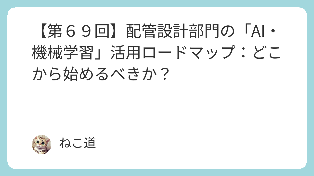 配管設計部門のAI活用は、まずPlant3Dの高品質なデータを基盤とし、「データ監査」や「BOMチェック」といった小さな成功体験を積み重ねることから始まります。AIを「設計者の能力を拡張するツール」として捉え、段階的なロードマップに沿って取り組みましょう。
