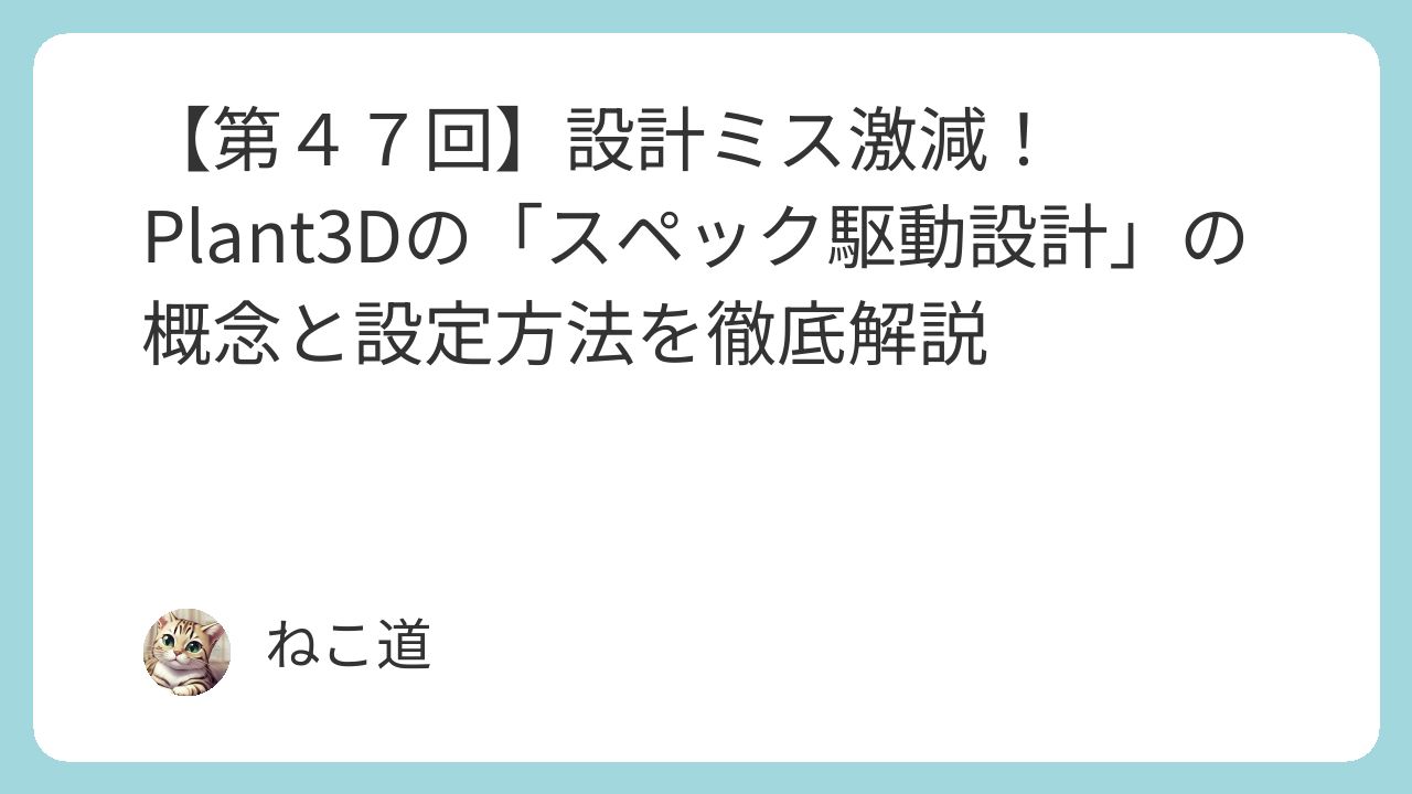 AutoCAD Plant3Dの核となる機能の一つが、このヒューマンエラーを原理的に防ぐ「スペック駆動設計(Spec-Driven Design)」です。本記事では、この概念を徹底解説し、設計品質を「設計者の記憶」ではなく「システム」で保証するための具体的な設定方法を紹介します。