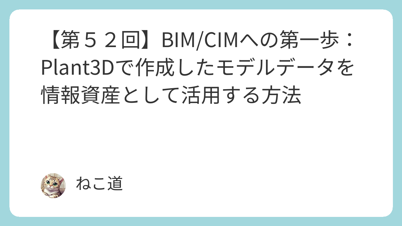 BIM/CIMへの対応は、もはや将来的な課題ではなく喫緊の要件です。Plant3Dは、配管設計の専門性に対応しつつ、BIM/CIMで求められる「情報の一貫性」を提供することができるツールです。これからの設計者は、単なる図面ではなく「情報資産」を生み出す役割があるという意識を持つ人材が重宝されると思います。