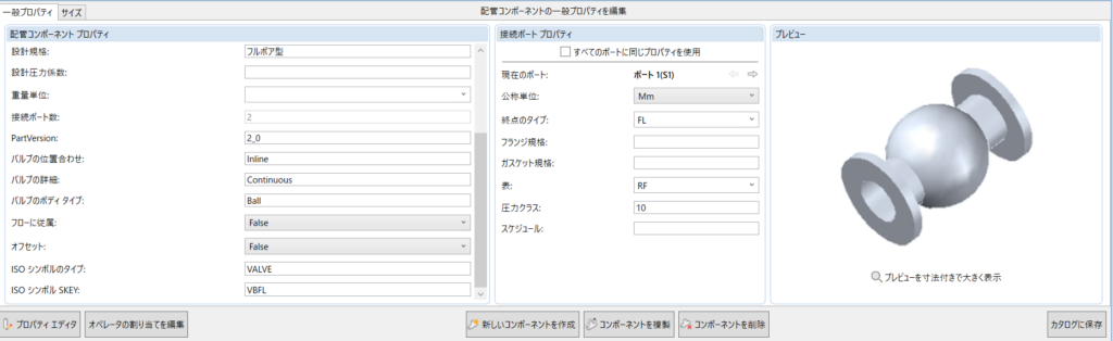 カタログ作成は、1から作るのは大変なので、デフォルトのものをコピーして作成するのが簡単でおすすめです。以下にボール弁の例を示します。
