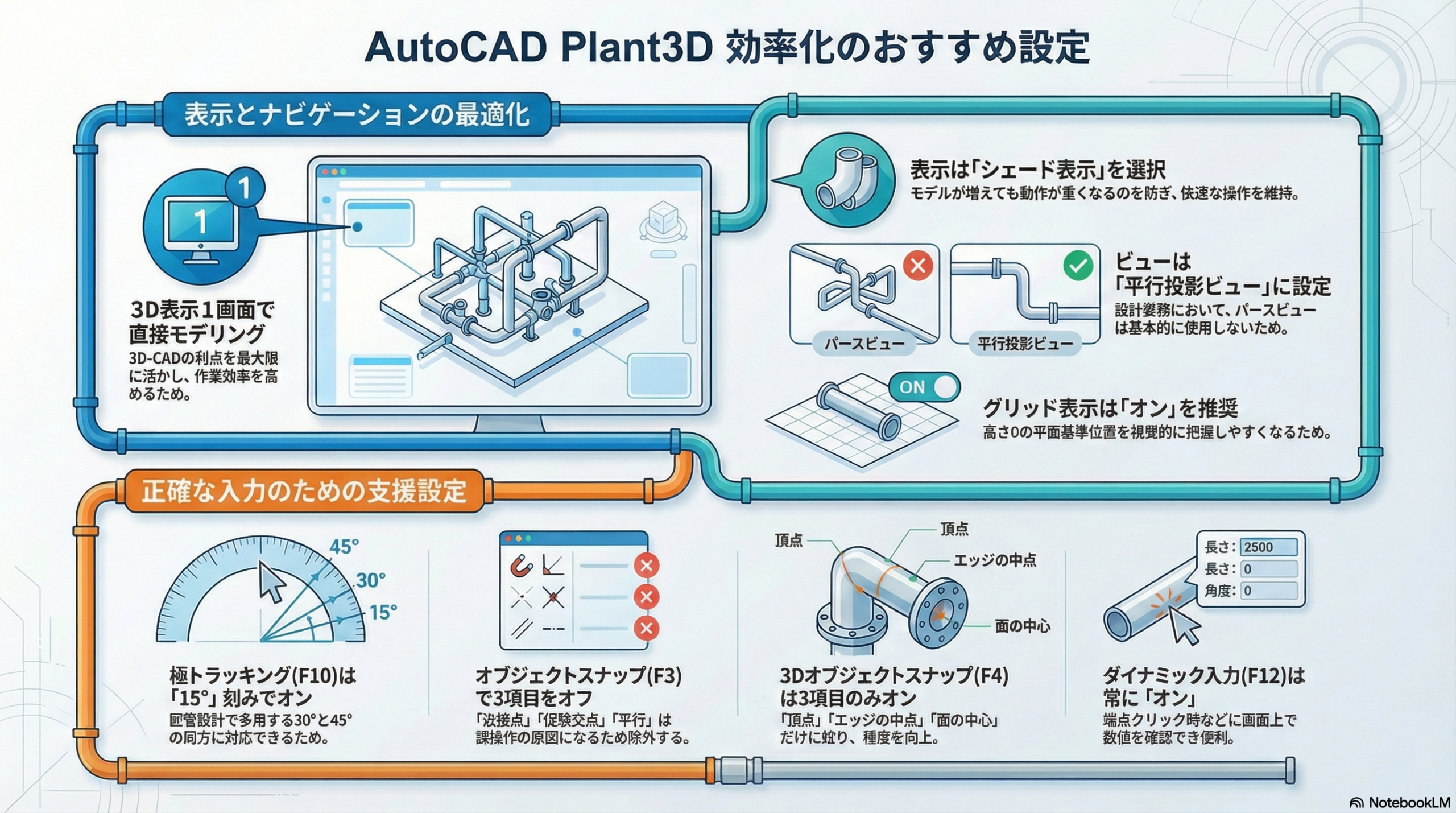 いかがでしたでしょうか?このあたりを基本設定にしておいていただくと、配管設計が効率よくできると思います。みなさんのおすすめ設定ありましたら、ぜひコメントで教えてください。